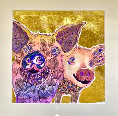 aquarell, acryl, marker & goldfolie
